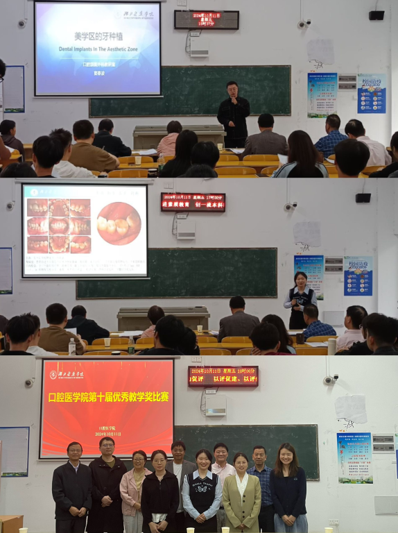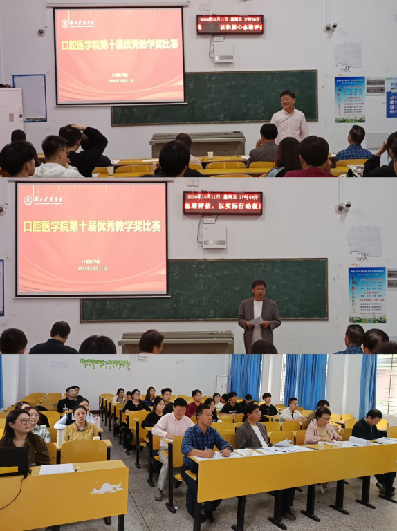 (通讯员 陈梦晓)10月11日下午,bw必威西汉姆联官方网站在5号教学楼5113教室举办了第十届优秀教学奖比赛,口腔一系、二系、三系通过系内选拔,推出9名教师来院参赛。由校教学督导专家组组长李文春教授、校教学督导专家朱名安教授、bw必威西汉姆联官方网站秦赤子书记、口腔一系罗志晓主任,口腔二系任伟伟主任,口腔三系郑钧元主任6位老师担任评委,10名员工代表担任员工评委。