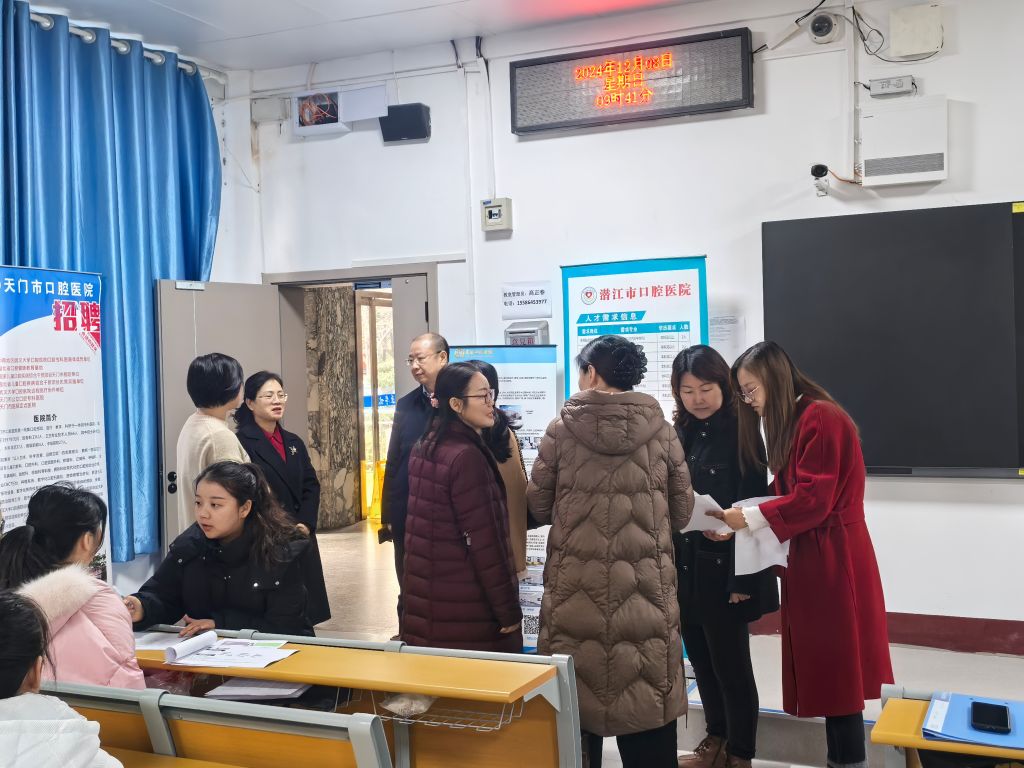 本次招聘会邀请了孝感市口腔医院、潜江市口腔医院、天门市口腔医院以及神龙架林区人民医院四家用人单位到场参加。招聘会现场气氛热烈,秩序井然。毕业生们手持精心准备的求职简历,积极主动地与用人单位进行深入的沟通交流,充分展现出他们对未来职业发展的热切期望。