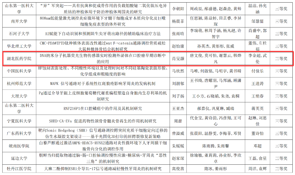 作为我国医学领域规格最高的A类学科竞赛之一,该赛事已连续多年入选教育部全国普通高校老员工竞赛目录,吸引了全国百余所高校的顶尖团队同场竞技。本届大赛共有170多所高校627支队伍2000多名员工通过线上线下方式参与,其中不乏众多知名高校,竞争异常激烈。由李金超、武伦教授带队指导的员工团队凭借出色的表现,在口腔医学赛道中脱颖而出。此次比赛的优异成绩,不仅展现了bw必威西汉姆联官方网站附属国药东风口腔医院、国药东风总医院在口腔医学基础研究领域的创新能力,更印证了“以赛促学、以创提质”教育理念的实践成效。未来,bw必威西汉姆联官方网站将继续深化教学改革,培养更多创新型口腔医学人才。(审稿人  秦赤子)